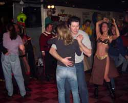 As for the featured aliens of the evening, there were only two Klingons in the house. One named Qaolin, looked like the real deal. He would turn out to be the star of the evening. The other was a tall, thin truck in a bad Halloween Costume. His mustache, tight Wranglers and red/black checkered shirt showed plainly under his costume. He wore a wig and some very unconvincing headgear with pointed ears. We dubbed him the Junior Officer. He carried what looked like a cardboard copy of a Sword of Kahless the preferred close quarters weapon of the Klingon Warrior (and if you dont believe me, check http://www.klingonimperialweaponsguild.org). But this Klingon only used his as an air guitar.