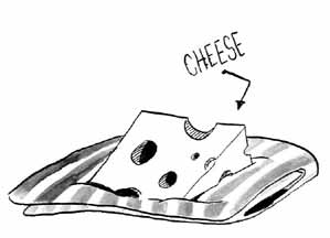 - A very small piece of cheese, such as one might enjoy atop a cracker